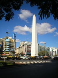 Ce drapeau fut hissé à Buenos Aires sur l'Eglise Saint Nicolas de Bari, à l'endroit où se dresse aujourd'hui l'Obélisque de Buenos Aires, Place de la République.